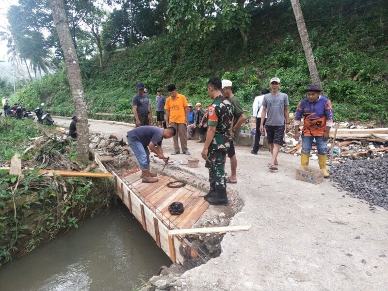 Babinsa Koramil 2202/Palabuhanratu Gotong Royong Laksanakan Pelebaran Jembatan di Desa Tonjong