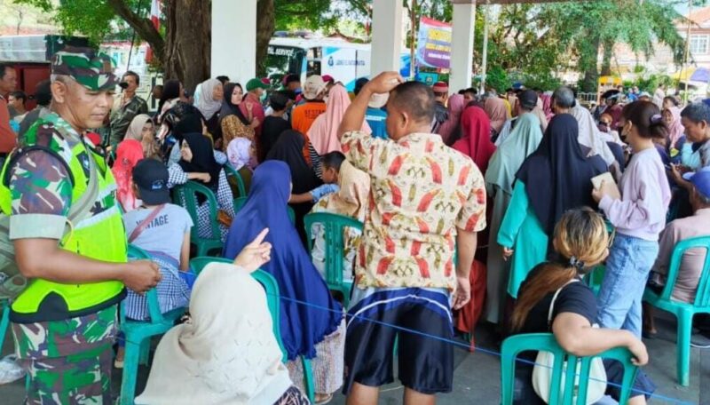 Palabuhanratu – Babinsa Koramil 2202/Palabuhanratu, Peltu Agus Sahli, melaksanakan kegiatan pengamanan pembagian bantuan kepada masyarakat di Kelurahan Palabuhanratu, Kecamatan Palabuhanratu, pada Senin, 02 Februari 2026.