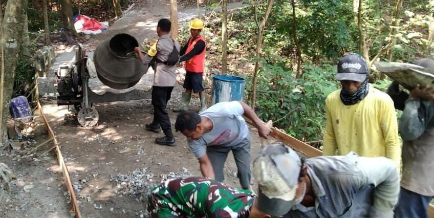 karya bakti Babinsa Koramil 2202/Palabuhanratu Laksanakan Pengecoran Jalan di Desa Tonjong