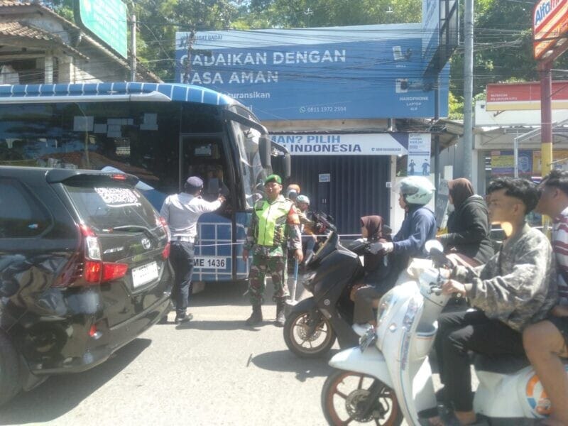 Babinsa Koramil 2202/Pelabuhan Ratu Laksanakan Pengamanan Lalu Lintas di Pos Pam Bagbagan