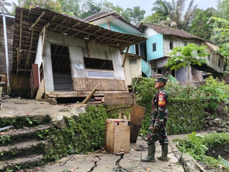 Bantar Gadung, – 4 Maret 2026 – Serka Didik, Babinsa Desa Bantar Gadung Koramil 2203/Warungkiara Kodim 0622/Kab. Sukabumi, terus melakukan pengecekan terhadap warga serta bangunan yang terdampak pergerakan tanah sejak 22 Februari 2026.