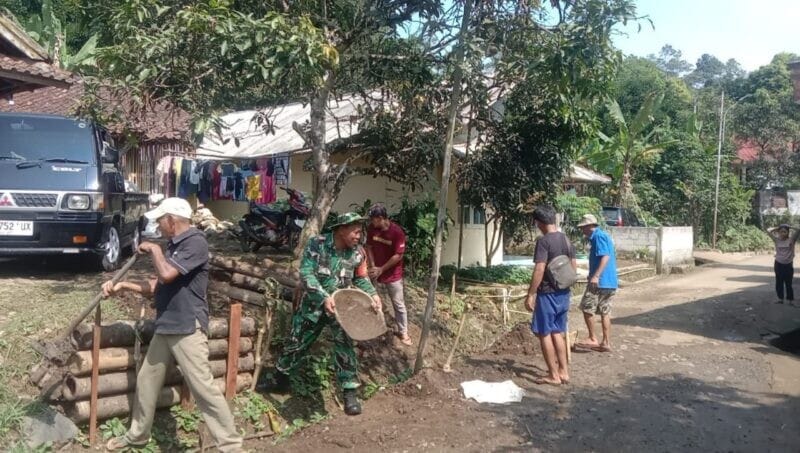 Babinsa Koramil 2204/Cikidang Laksanakan Bhakti Perbaikan Jalan di Desa Cijambe