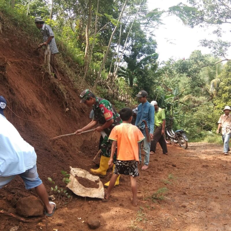 Babinsa Koramil 2204/Cikidang Laksanakan Karya Bakti Perbaikan Jalan di Desa Bumisari
