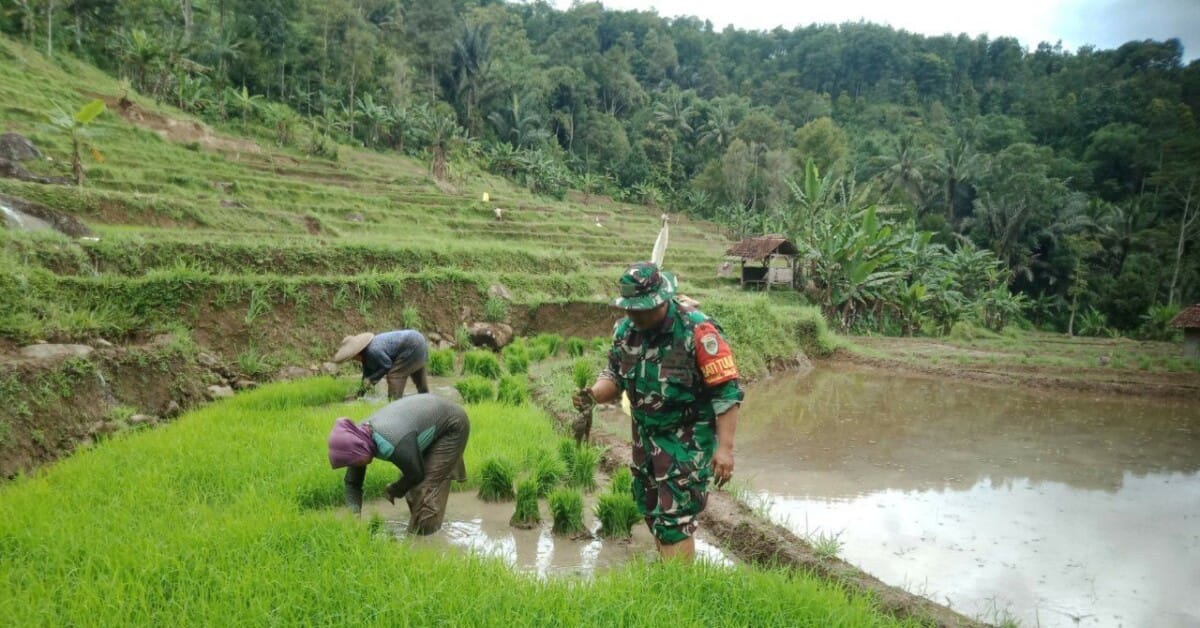 Cikidang – Minggu (22/02/2026), Babinsa Koramil 2204/Cikidang, Serka Mulyadi selaku Babinsa Desa Cikarae Thoyibah melaksanakan kegiatan pendampingan Luas Tambah Tanam (LTT) bersama Kelompok Tani (Poktan) Cigadog di Desa Cikarae Thoyibah, Kecamatan Cikidang.