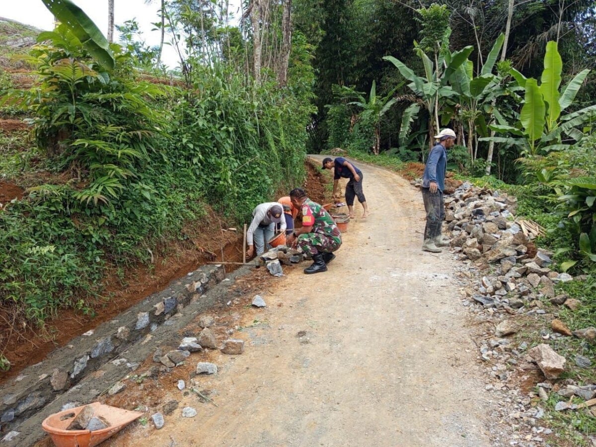 BABINSA KORAMIL 2205/KALAPANUNGGAL LAKSANAKAN BAKTI PEMBUATAN DRAINASE DI DESA KADUNUNGGAL