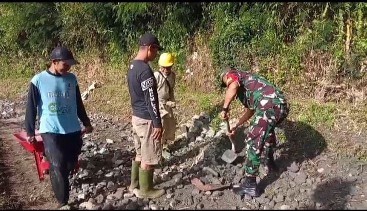 Babinsa Koramil 2205/Kalapanunggal Laksanakan Bakti Pemeliharaan Jalan di Desa Kabandungan