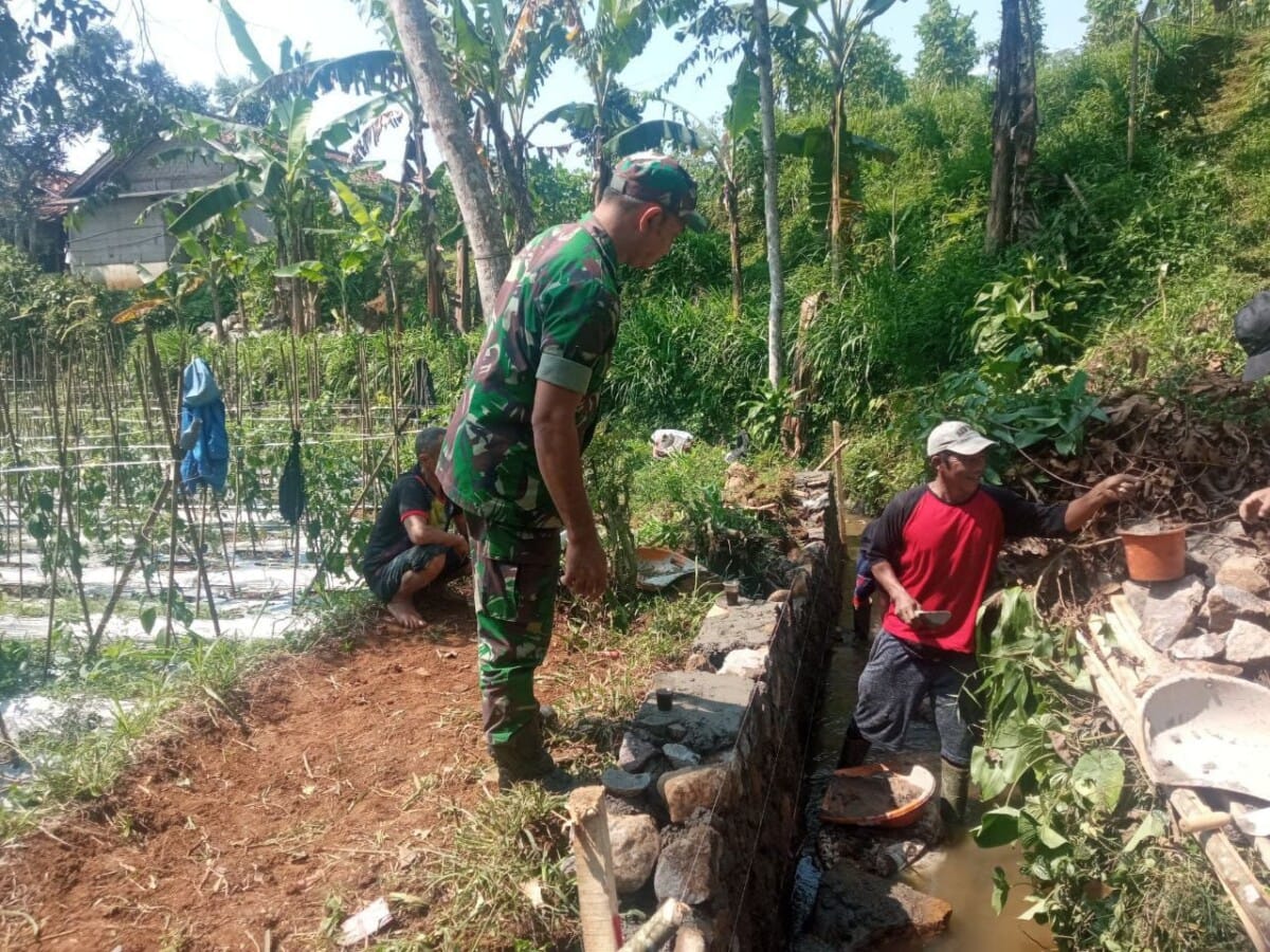 BABINSA KORAMIL 2205/KALAPANUNGGAL LAKSANAKAN KERJA BAKTI PERBAIKAN SALURAN IRIGASI DI DESA TUGU BANDUNG