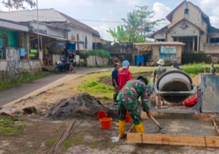 karya bakti Babinsa Koramil 2206/Parakansalak Laksanakan Karya Bakti Perbaikan Jalan di Desa Sukakersa