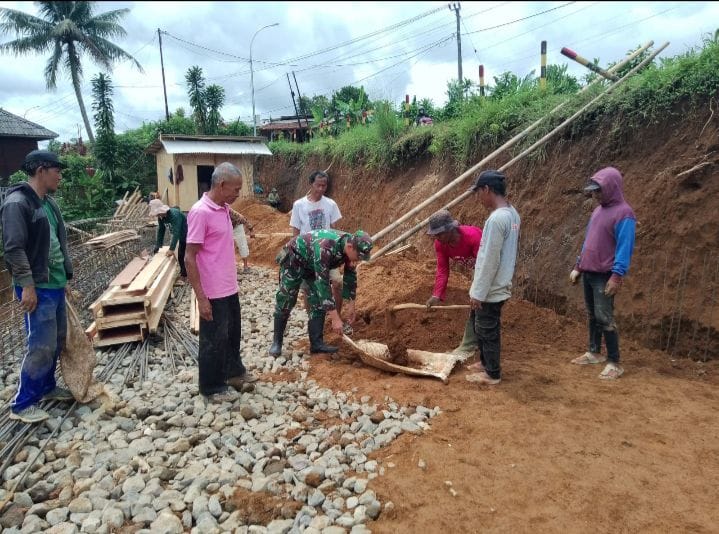 Babinsa Koramil 2206/Parakansalak Laksanakan Karya Bakti Perbaikan Jalan di Desa Sukatani