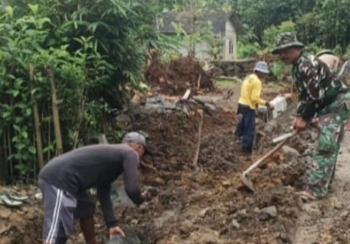 karya bakti Babinsa Koramil 2206/Parakansalak Laksanakan Karya Bakti Perbaikan Parit di Desa Bojongasih