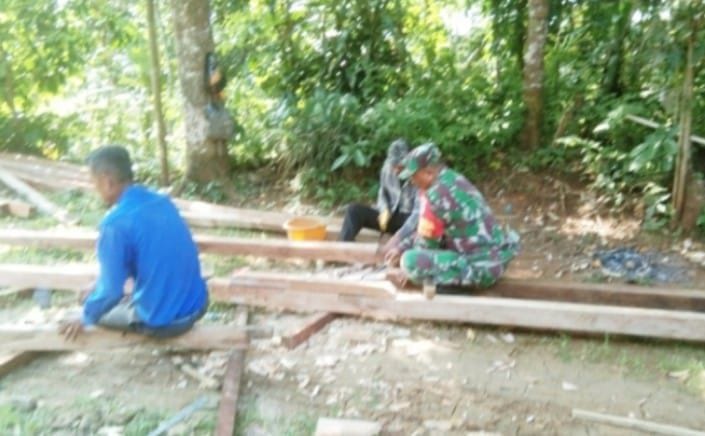 Babinsa Koramil 2206/Parakansalak Laksanakan Karya Bakti Perbaikan Rutilahu