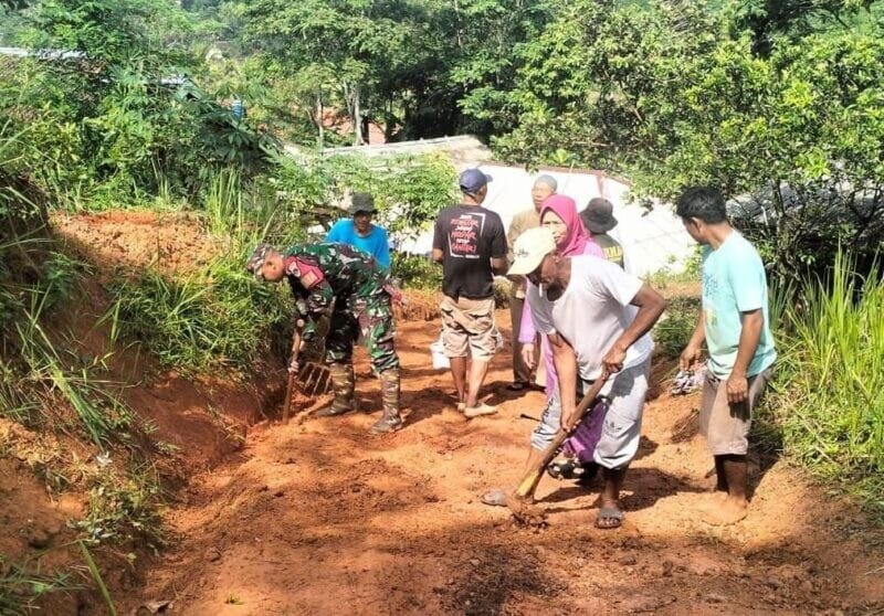 Babinsa Koramil 2207/Jampangtengah Bersama Warga Laksanakan Karya Bakti Pembersihan Jalan Lingkungan