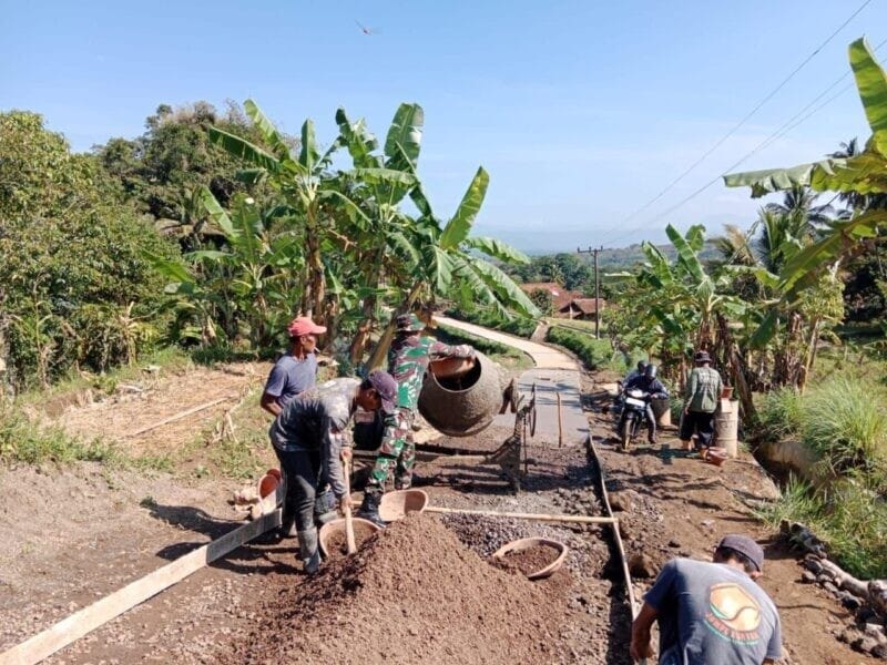 karya bakti Babinsa Koramil 2207/Jampangtengah Bersama Warga Laksanakan Karya Bakti Pengecoran Jalan Desa