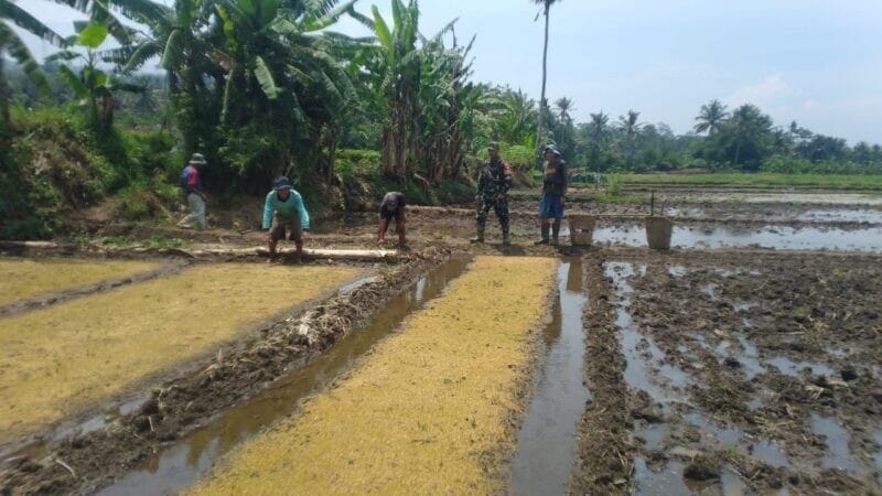 Dalam kegiatan tersebut, Serka Eka Yuliyanto turut terjun langsung ke lapangan bersama para petani, memberikan motivasi serta membantu dalam proses pengelolaan lahan pertanian padi. Kehadiran Babinsa diharapkan mampu memberikan semangat dan dorongan bagi para petani untuk terus meningkatkan produktivitas.