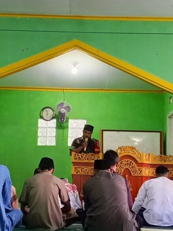 Sukabumi, 21 Maret 2026 – Dalam rangka pelaksanaan Hari Raya Idul Fitri 1447 H, Babinsa Koramil 2208/Nyalindung, Kopda Alex C yang bertugas sebagai Babinsa Desa Sukamanah melaksanakan kegiatan pembacaan amanat Bupati Sukabumi pada pelaksanaan Shalat Idul Fitri.