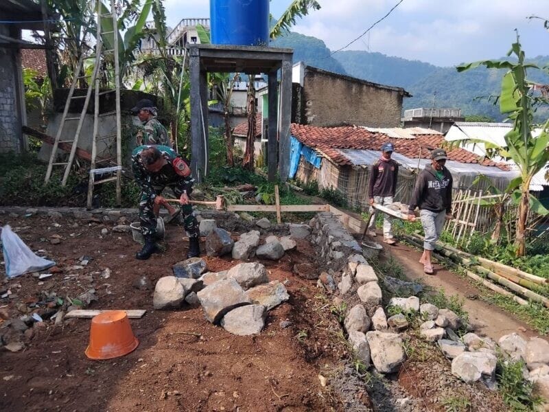 Babinsa Koramil 2208/Nyalindung Laksanakan Bakti Pembangunan Posyandu di Desa Karangjaya