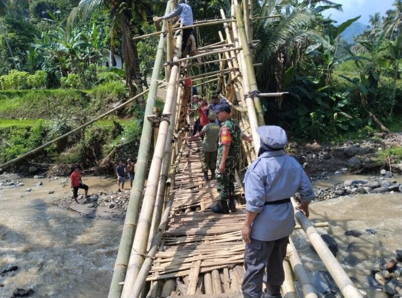 karya bakti Babinsa Koramil 2208/Nyalindung Laksanakan Bakti Perbaikan Jembatan Bambu di Desa Bojongsari