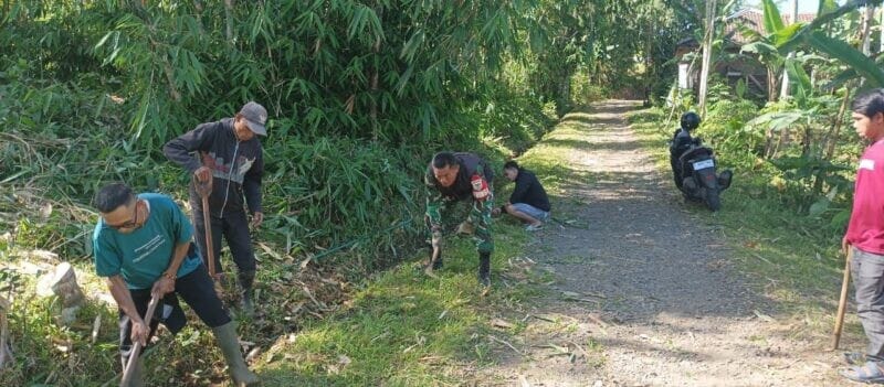 Babinsa Koramil 2208/Nyalindung Laksanakan Karya Bakti Pembersihan Jalan di Kp. Panaruban