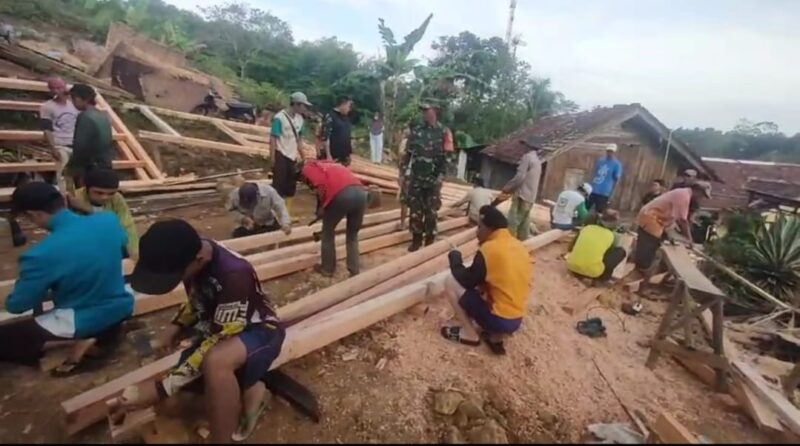 Babinsa Koramil 2209/Lengkong Bersama Warga Gotong Royong Bangun Rumah Tidak Layak Huni