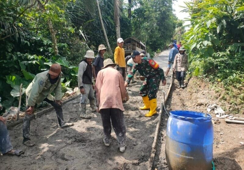 Sukabumi β Dalam upaya meningkatkan sarana infrastruktur desa serta mempererat kebersamaan dengan masyarakat, Babinsa Desa Cilangkap Koramil 2209/Lengkong Kodim 0622/Kabupaten Sukabumi, Sertu Rusman, melaksanakan kegiatan karya bakti pengecoran jalan desa bersama warga di Kampung Cipanengah, Desa Cilangkap, Kecamatan Lengkong.