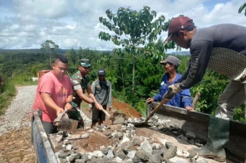 Sukabumi – Dalam rangka meningkatkan akses jalan dan mempererat kemanunggalan TNI dengan rakyat, Babinsa Desa Cilangkap Koramil 2209/Lengkong, Sertu Rusman, melaksanakan kegiatan karya bakti perkerasan jalan bersama masyarakat di Kampung Cipanengah, Desa Cilangkap, Kecamatan Lengkong, Kabupaten Sukabumi.