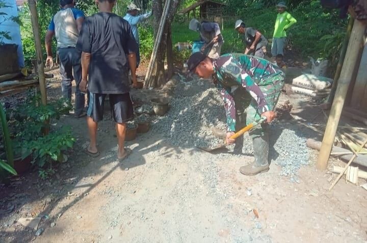 Sukabumi β Babinsa Desa Pabuaran Koramil 2210/Pabuaran, Serma Agung, melaksanakan kegiatan karya bhakti bersama masyarakat di Kampung Pasir Gombong, Desa Pabuaran, Kecamatan Pabuaran, Kabupaten Sukabumi.