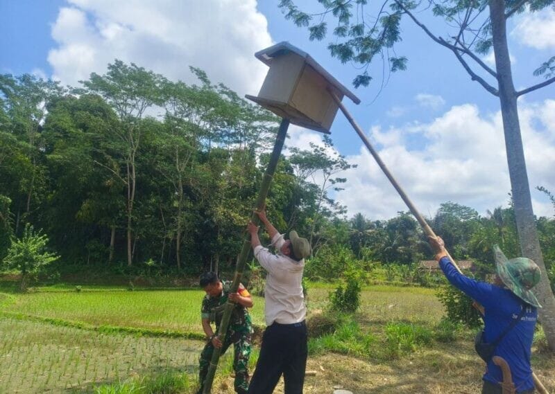 Babinsa Koramil 2211/Sagaranten Dampingi Program Ketahanan Pangan melalui Pembuatan Sarang Burung Hantu