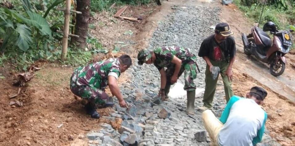 karya bakti BABINSA KORAMIL 2211/SAGARANTEN LAKSANAKAN KARYA BAKTI PERBAIKAN JALAN DI DESA CIKARANG