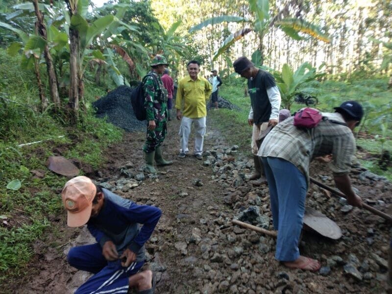 admin Babinsa Koramil 2211/Sagaranten Laksanakan Karya Bakti Perbaikan Jalan di Desa Margaluyu