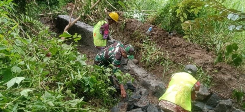 karya bakti Babinsa Koramil 2212/Tegalbuleud Bersama Warga Laksanakan Karya Bakti Perbaikan Saluran Air