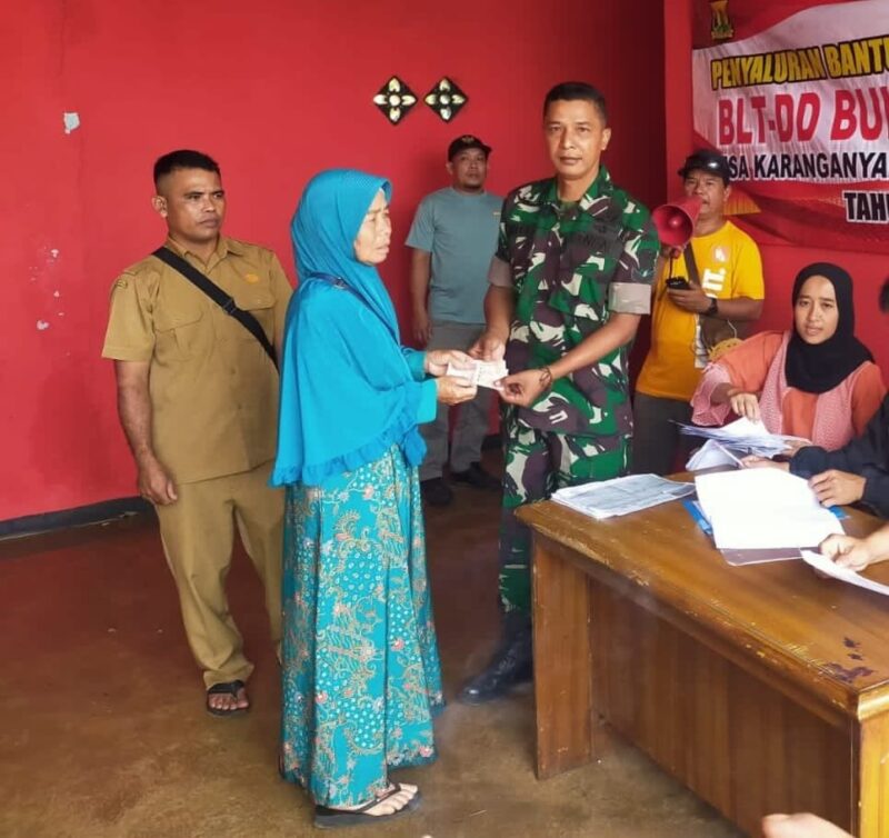 Jampang Kulon, 13 Januari 2026 – Serka Eko Setiono, Babinsa Desa Karanganyar, Koramil 2213/Jampang Kulon, melaksanakan kegiatan pendampingan penyaluran Bantuan Langsung Tunai Dana Desa (BLT DD) di wilayah Kecamatan Jampang Kulon, Kabupaten Sukabumi, pada hari Selasa, 13 Januari 2026.