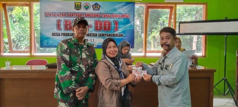 Sukabumi – Babinsa Koramil 2213/Jampangkulon, Sertu Didik Sumardiyo, melaksanakan kegiatan pendampingan penyaluran Bantuan Langsung Tunai Dana Desa (BLT DD) yang bertempat di Aula Desa Padajaya, Kecamatan Jampangkulon, Kabupaten Sukabumi.