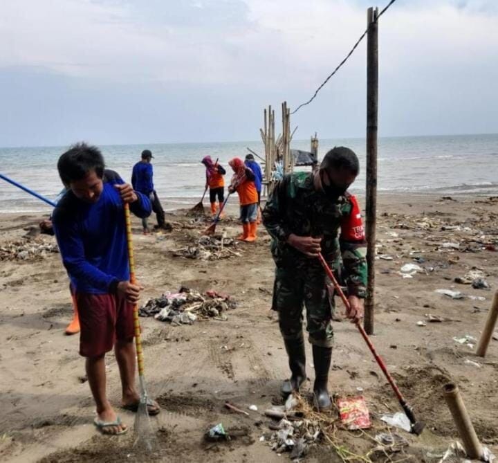 BABINSA KORAMIL 2214/SURADE BERSAMA WARGA LAKSANAKAN BHAKTI PEMBERSIHAN PANTAI CIBUAYA