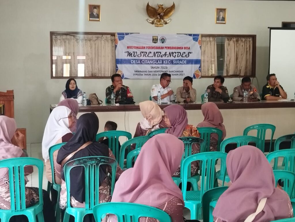 Sukabumi – Babinsa Koramil 2214/Surade, Sertu Asep, S.E., pada hari Selasa, 21 Oktober 2025, menghadiri kegiatan Musyawarah Perencanaan Pembangunan Desa (Musrenbangdes) yang dilaksanakan di Kantor Desa Citanglar, Kecamatan Surade.