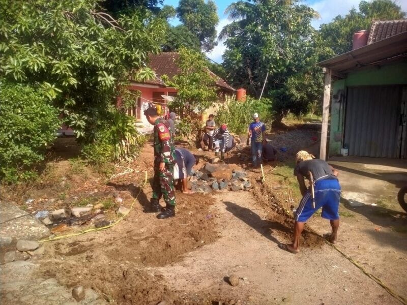 Babinsa Koramil 2215/Ciemas Bersama Warga Laksanakan Bakti Pembangunan Jalan di Kampung Cikareo