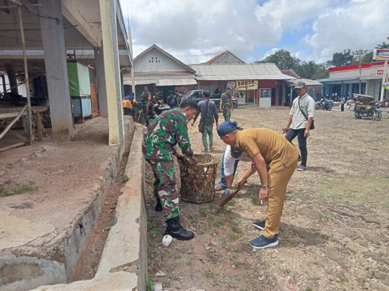 Kegiatan karya bakti tersebut dilakukan secara gotong royong dengan membersihkan area pasar, saluran air, serta sampah yang berada di sekitar lingkungan pasar. Kehadiran Babinsa di tengah masyarakat merupakan bentuk nyata kepedulian TNI AD dalam membantu mengatasi kesulitan rakyat di wilayah binaan.