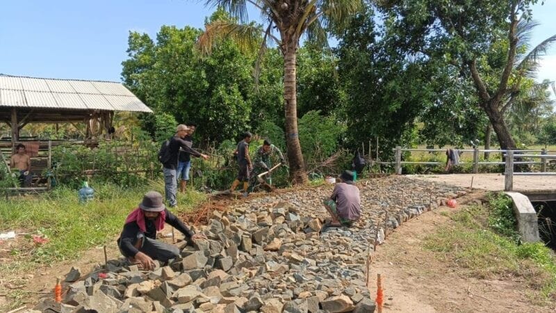 Ciemas – Dalam upaya meningkatkan akses infrastruktur desa, Babinsa Koramil 2215/Ciemas, Serka Budi selaku Babinsa Desa Ciwaru, melaksanakan kegiatan bakti pembangunan jalan jembatan bersama warga masyarakat.