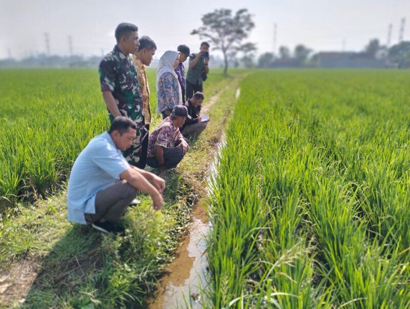 Babinsa Ciwaru Koramil 2215/Ciemas, Serka Budi, melaksanakan pendampingan pemeriksaan hama padi bersama Kelompok Tani Jaya Tani. Kegiatan ini bertujuan untuk memantau kondisi tanaman padi serta mendeteksi secara dini adanya serangan hama yang dapat mengganggu hasil panen petani.