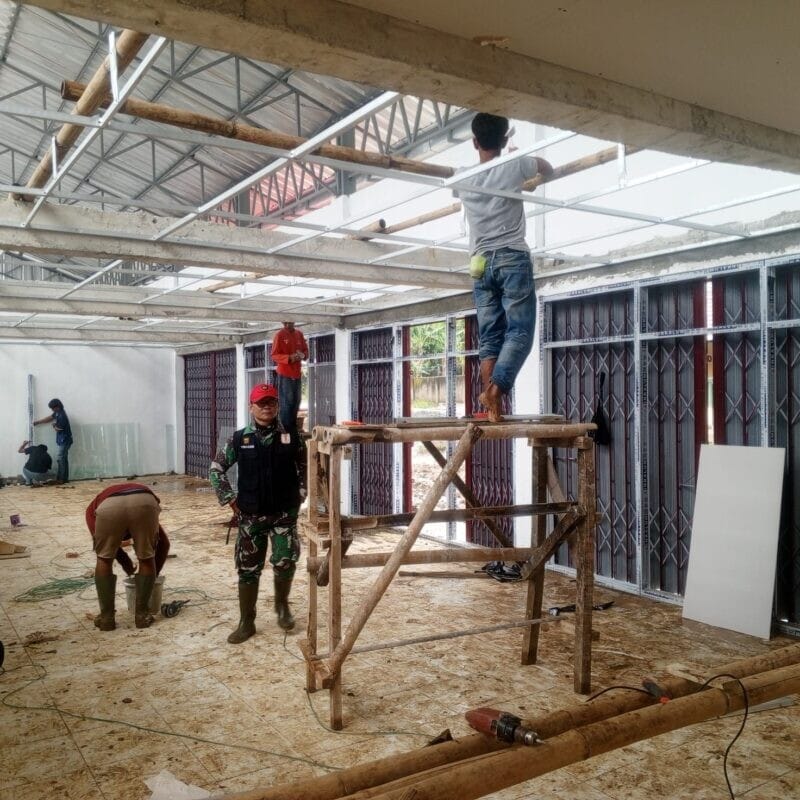 Sukabumi – Batuud Koramil 2213/Jampangkulon Kodim 0622/Kabupaten Sukabumi, Sertu Iwan Wahyudi melaksanakan kegiatan pendampingan pembangunan KDMP di wilayah Kecamatan Jampangkulon, Kabupaten Sukabumi.