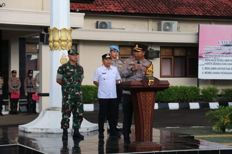 Kegiatan apel tersebut dipimpin langsung oleh Kapolres Sukabumi AKBP Dr. Samian, S.H., S.I.K., M.Si dan diikuti sekitar 200 personel gabungan dari berbagai instansi terkait.