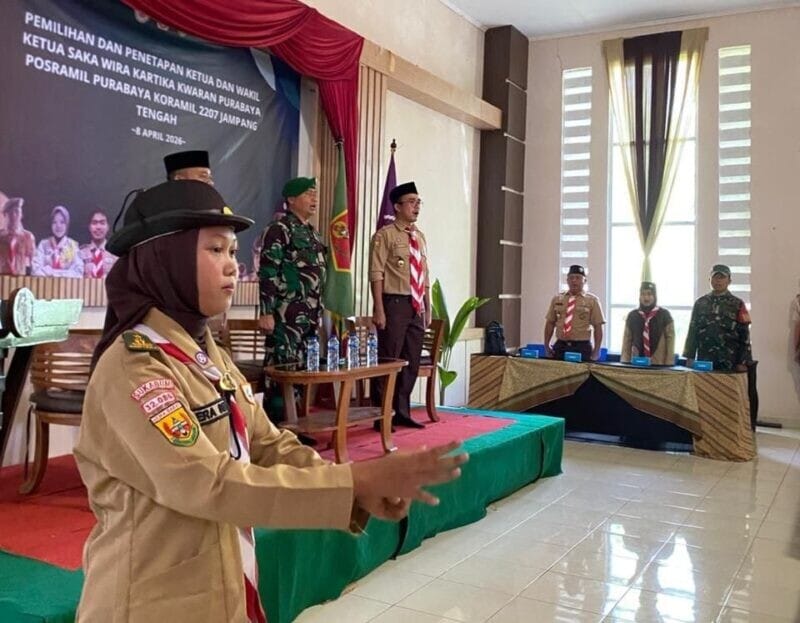 Jampangtengah, – Danramil 2207/Jampangtengah Kapten Inf Budi Hadi Priyadi beserta anggota menghadiri kegiatan Pemilihan dan Penetapan Ketua dan Wakil Ketua Saka Wira Kartika Koramil 2207/Jampangtengah yang dilaksanakan pada Jumat (10/04/2026).
