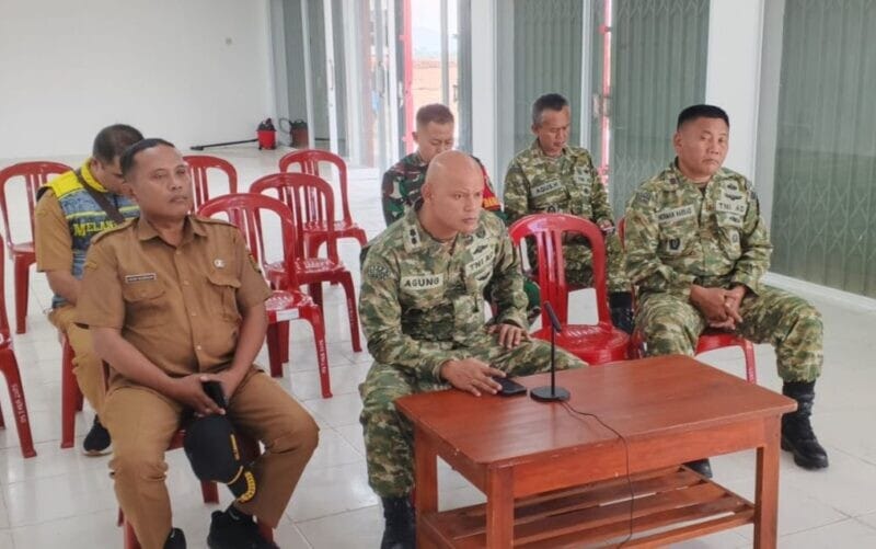 Lengkong – Danramil 2209/Lengkong Kapten Arm Witono, S.H.I mendampingi Dandim 0622/Kab. Sukabumi Letkol Inf Agung Ariwibowo, S.Hub.Int dalam kegiatan Video Conference (Vicon) Koperasi Merah Putih yang dilaksanakan di Gerai KDKMP Desa Tegallega, Kecamatan Lengkong, Kabupaten Sukabumi.