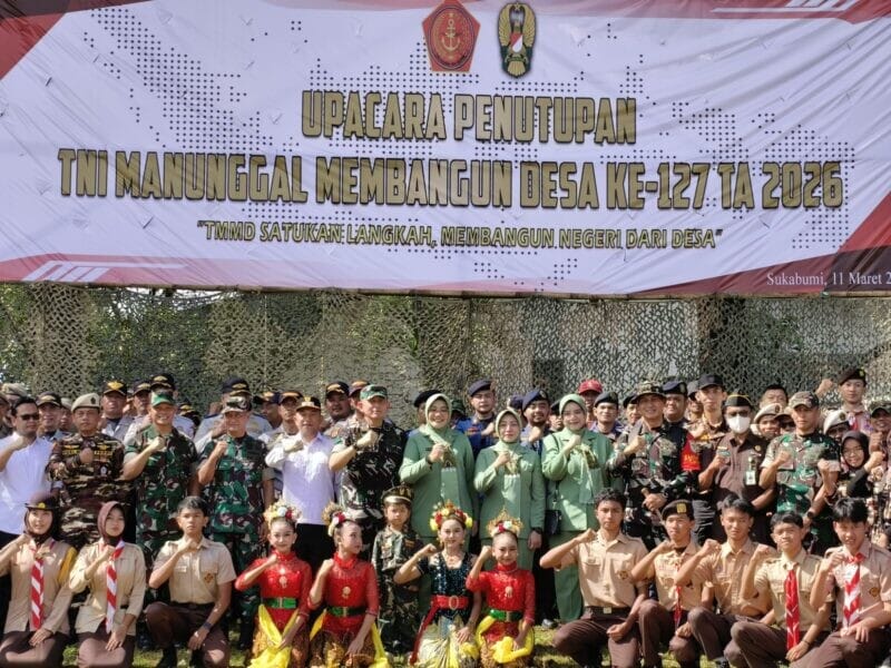 Kabupaten Sukabumi – Program TNI Manunggal Membangun Desa (TMMD) Ke-127 Tahun 2026 yang dilaksanakan oleh Kodim 0607/Kota Sukabumi resmi ditutup dalam sebuah upacara di Lapangan Sepakbola Perumnas Parakanlima Indah, Desa Kertaraharja, Kecamatan Cikembar, Kabupaten Sukabumi, Rabu (11/3/2026).