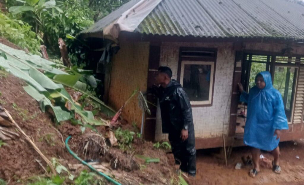 Longsor tersebut terjadi akibat curah hujan tinggi yang mengguyur wilayah Cisolok sejak beberapa hari terakhir, sehingga menyebabkan timbunan tanah dan batu menutupi sebagian halaman serta dinding belakang rumah warga.