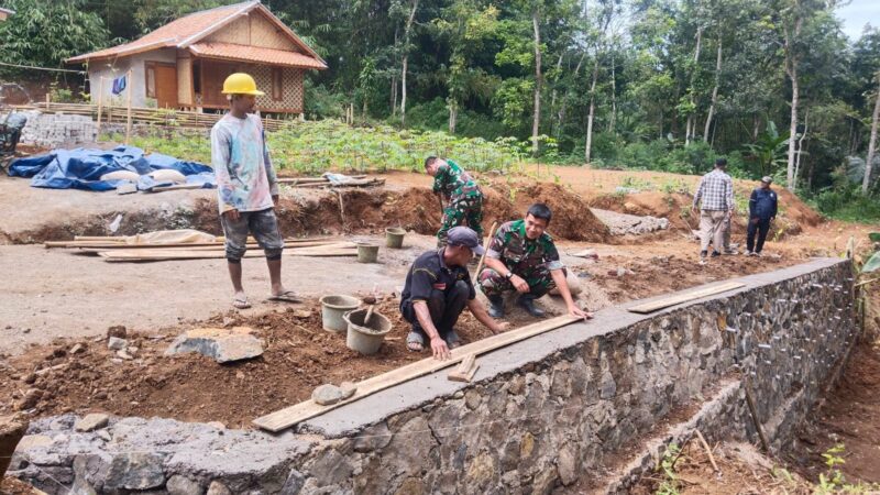 Koramil 2208/Nyalindung Laksanakan Karya Bakti Pembangunan TPT Jalan di Desa Mekarsari