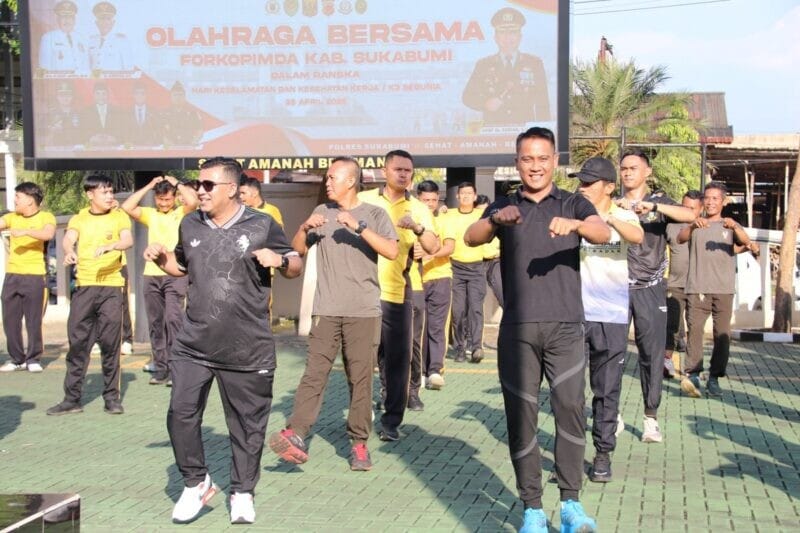 SUKABUMI β Dalam rangka menjaga kebugaran fisik dan mental sekaligus mempererat sinergitas antarinstansi, unsur Forum Koordinasi Pimpinan Daerah (Forkopimda) Kabupaten Sukabumi melaksanakan kegiatan olahraga bersama berupa senam pagi dan jalan santai di Mapolres Sukabumi, Palabuhanratu, Selasa (28/4/2026).